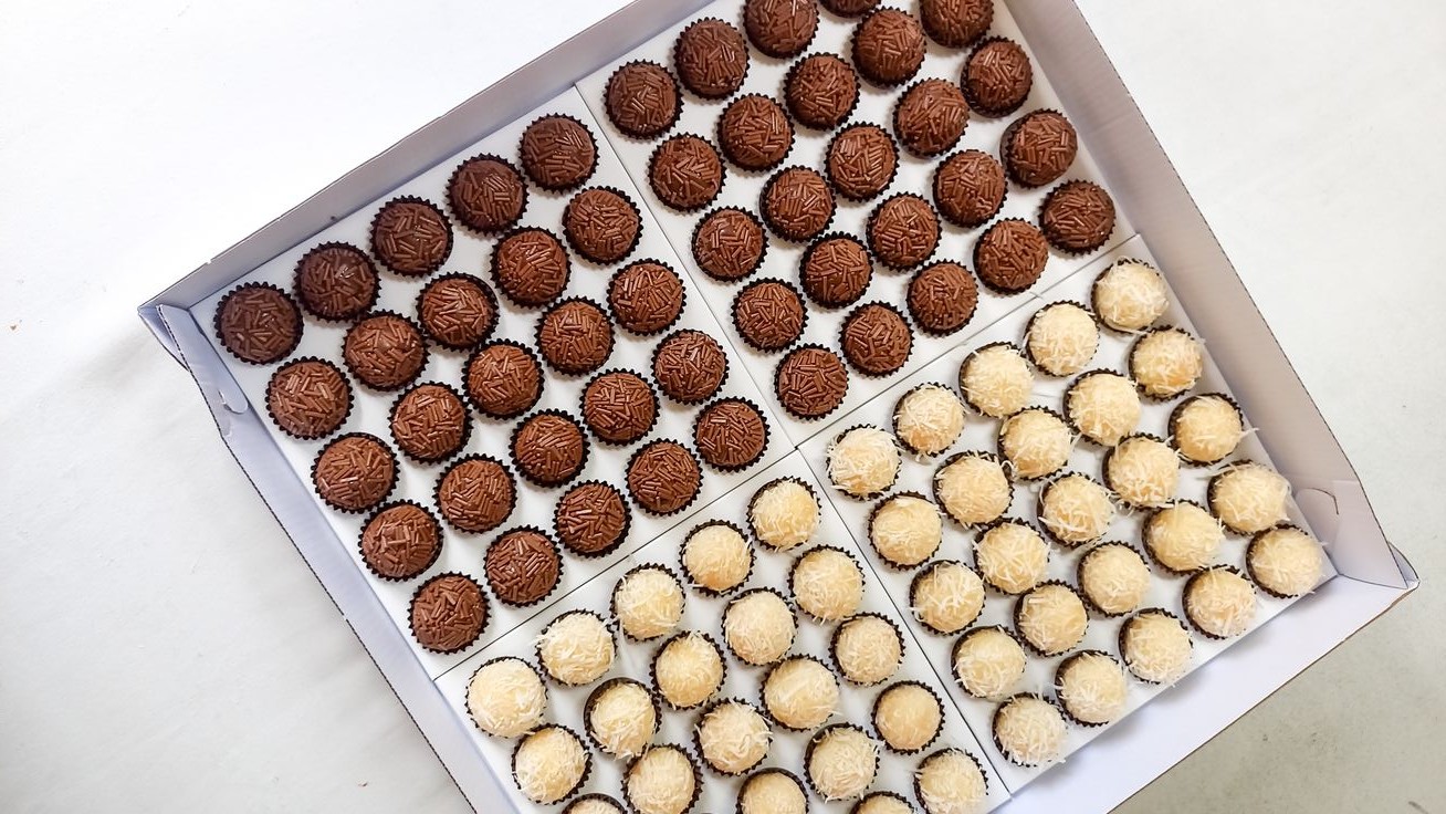 Uma opção perfeita para presentear ou se deliciar em qualquer momento! Brigadeiros de qualidade e preparo artesanal, você pode escolher até 2 sabores entre nossas opções disponíveis, criando uma combinação única e personalizada. Peso aproximado por unidade: 20g apx. Forminha padrão branca n°5